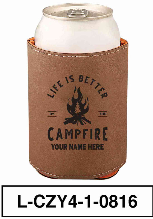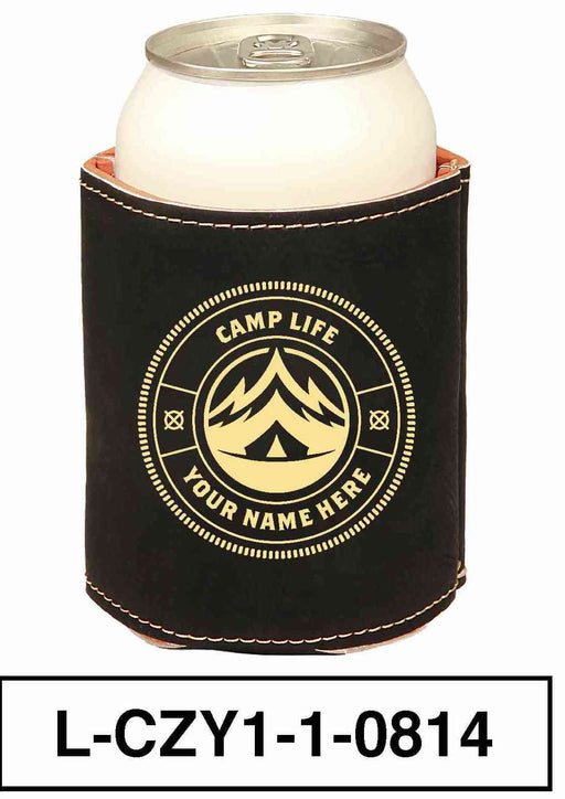 LEATHERETTE CAN COZY - "CAMP LIFE"