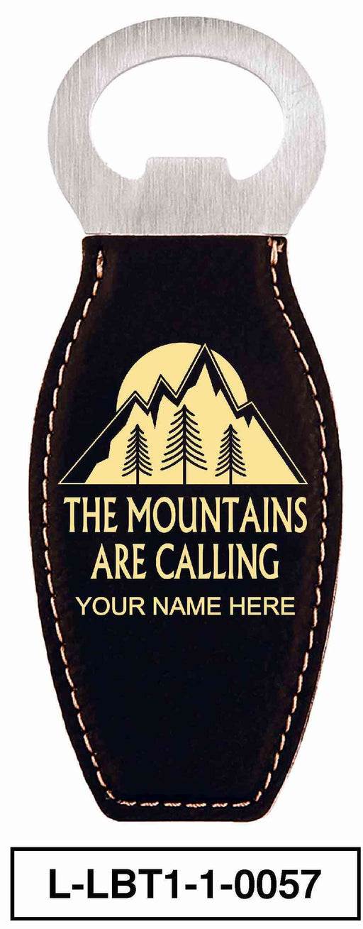 LEATHERETTE BOTTLE OPENER MAGNET - "THE MOUNTAINS ARE CALLING"