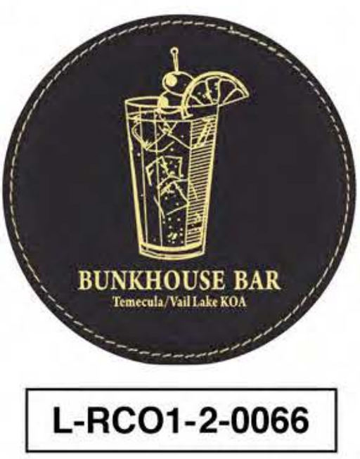 Original price $24.00 - Original price $24.00Original price$24.00$24.00 - $24.00Current price $24.00| /In stockDESCRIPTION: TEMECULA KOA - BUNKHOUSE BAR LEATHERETTE COASTER 12 PER CASE (ONE COLOUR) - 2$ PER UNIT