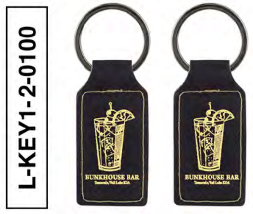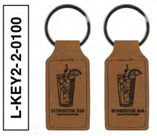 DESCRIPTION:  TEMECULA KOA - BUNKHOUSE BAR LEATHERETTE KEYCHAIN 12 PER CASE (ONE COLOUR) - 2$ PER UNIT