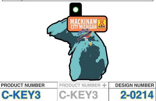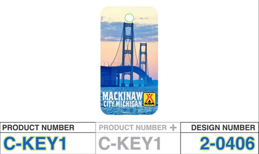 Original price $24.00 - Original price $24.00Original price$24.00$24.00 - $24.00Current price $24.00| /In stockDESCRIPTION: 1.5" X 2.5" - MACKINAW CITY KOA KEYCHAIN 12 UNITS PER CASE - $2 PER UNIT